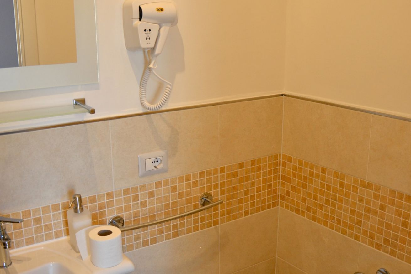 Le camere doppie o uso singola possono essere allestite con letto matrimoniale o se richiesto con due letti singoli (sommier King size), tutte con bagno privato in camera con doccia e fornite di utili servizi.